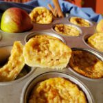 - Jedes Förmchen mit 2-3 EL der Apfelpudding-Füllung befüllen. Etwa ¾ des Förmchens sollten damit ausgefüllt sein.